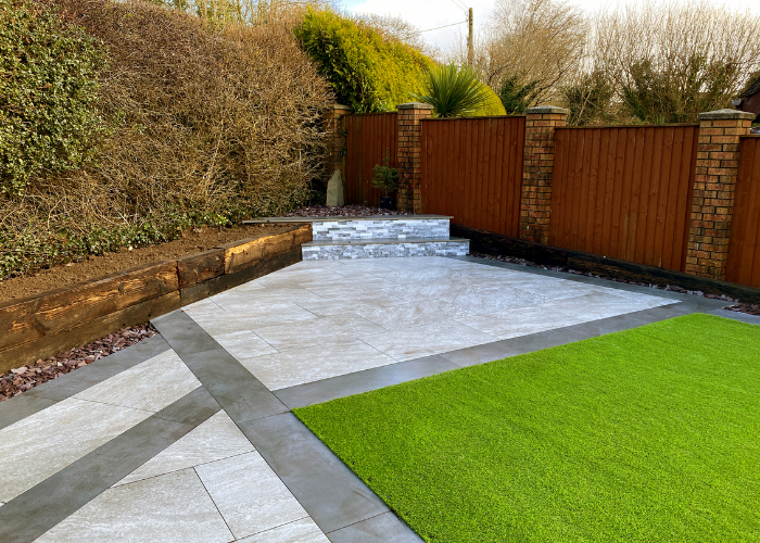 Choose from a variety of materials, including Indian sandstone, porcelain, and block paving, to create elegant hardscaping features